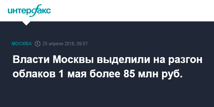 Власти Москвы выделили на разгон облаков 1 мая более 85 млн руб.