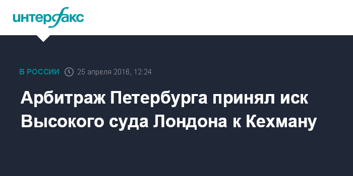 Арбитраж Петербурга принял иск Высокого суда Лондона к Кехману