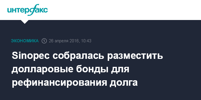 Москва. 26 апреля. INTERFAX.RU - Китайская China Petroleum & Chemical Corp. (Sinopec), крупнейшая в Азии нефтеперерабатывающая компания, рассчитывает разместить долларовые бонды на общую сумму три млрд долларов для рефинансирования долга, сообщает агентство Bloomberg со ссылкой на информированные источники.