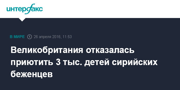 Москва. 26 апреля. INTERFAX.RU - Консервативная партия Великобритании проголосовала в Палате общин против того, чтобы принять 3 тыс. детей сирийских беженцев, оказавшихся в безвыходном положении в Европе, сообщает Mashable.