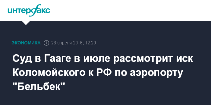 Москва. 26 апреля. INTERFAX.RU - Международный арбитражный суд в Гааге (Permanent Court of Arbitration) продолжает разбирательство по иску бизнесмена Игоря Коломойского и ООО "Аэропорт "Бельбек" (Севастополь, Крым) к Российской Федерации, несмотря на неучастие ответчика.