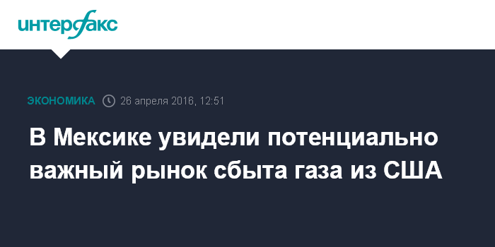Москва. 26 апреля. INTERFAX.RU - Американские газодобывающие компании активно наращивают экспорт природного газа по трубам в Мексику, рассматривая рынок соседней страны в качестве одного из самых перспективных стратегических направлений, пишет The Wall Street Journal.