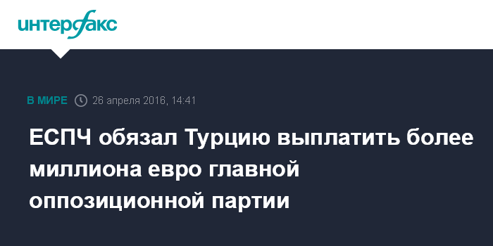 Москва. 26 апреля. INTERFAX.RU - Европейский суд по правам человека (ЕСПЧ) удовлетворил иск турецкой оппозиционной Народно-республиканской партии к властям Турции, сообщается в пресс-релизе суда.