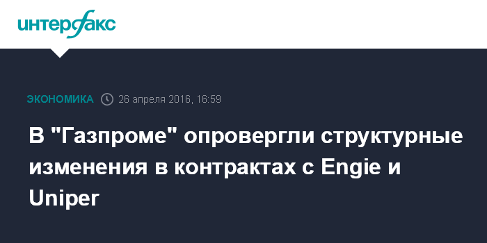 В "Газпроме" опровергли структурные изменения в контрактах с Engie и Uniper