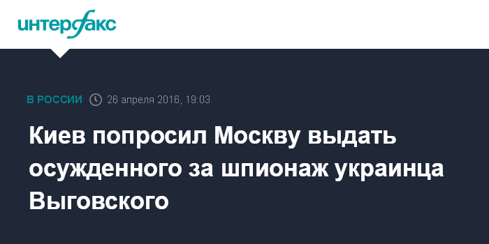 Как сообщалось, 31 марта Верховный суд РФ признал законным приговор гражданину Украины Выговскому, осужденному на 11 лет колонии строгого режима за шпионаж.