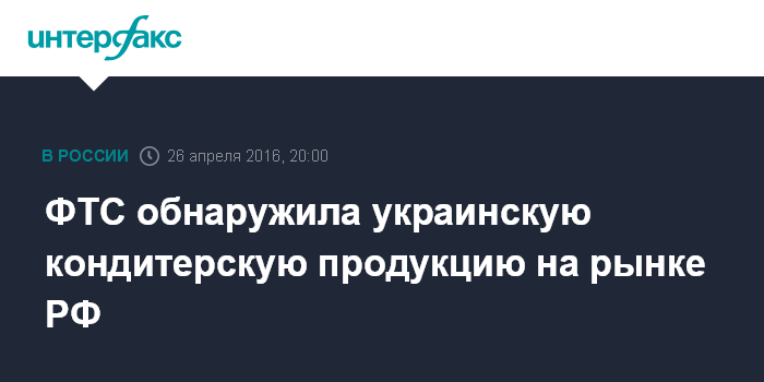 Москва. 26 апреля. INTERFAX.RU - Руководитель ФТС России Андрей Бельянинов заявил, что украинские кондитерские изделия по-прежнему можно встретить на полках в магазинах РФ.