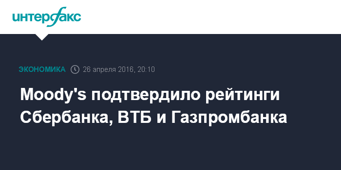 Moody's подтвердило рейтинги Сбербанка, ВТБ и Газпромбанка