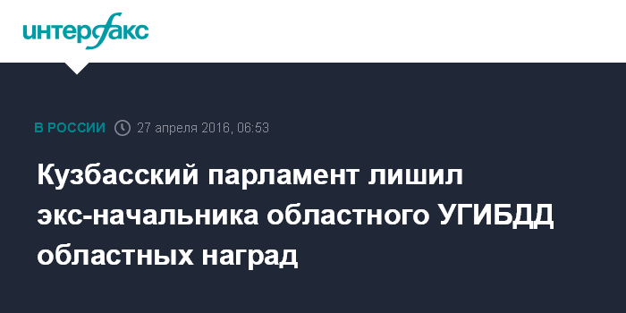 Кузбасский парламент лишил экс-начальника областного УГИБДД областных наград