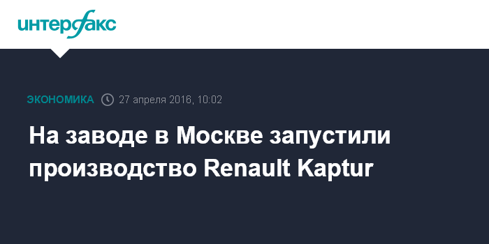 Москва. 27 апреля. INTERFAX.RU - Французский автомобилестроительный концерн Renault запустил в среду серийное производство полноприводного кроссовера Kaptur на своем московском заводе, сообщил корреспондент "Интерфакса" с церемонии запуска.