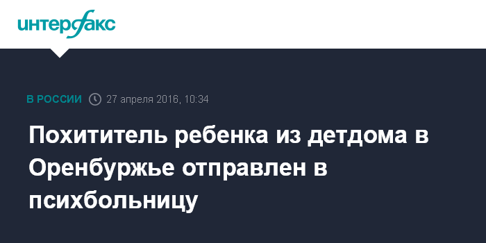 Похититель ребенка из детдома в Оренбуржье отправлен в психбольницу