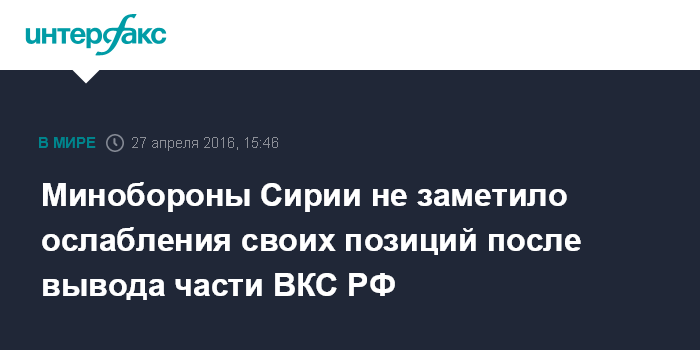 Минобороны Сирии не заметило ослабления своих позиций после вывода части ВКС РФ
