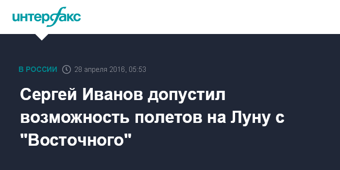 Москва. 28 апреля. INTERFAX.RU - Космические аппараты в рамках лунной программы смогут в будущем запускаться с космодрома "Восточный", уверен глава администрации президента РФ Сергей Иванов.