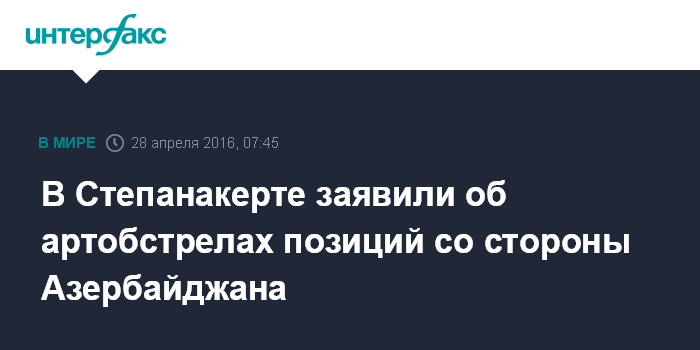 Москва. 28 апреля. INTERFAX.RU - В ночь на четверг азербайджанские вооруженные силы продолжали интенсивно обстреливать позиции Армии обороны непризнанной Нагорно-Карабахской республики по всей протяженности линии соприкосновения из танков, минометов различного калибра, огнеметов, реактивных систем залпового огня TR-107 и "Град", сообщили "Интерфаксу" в пресс-службе Минобороны НКР.