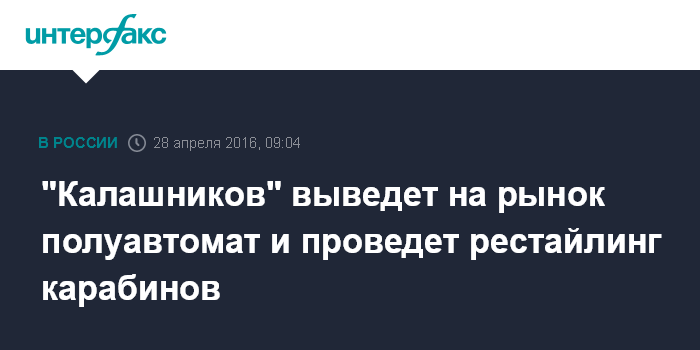 Москва. 28 апреля. INTERFAX.RU - Концерн "Калашников" в текущем году намерен вывести на рынок полуавтомат и карабин со сбалансированной автоматикой и провести рестайлинг известных охотничьих карабинов, сообщает корпоративная газета предприятия со ссылкой на заместителя генерального директора Эдуарда Иоффе.