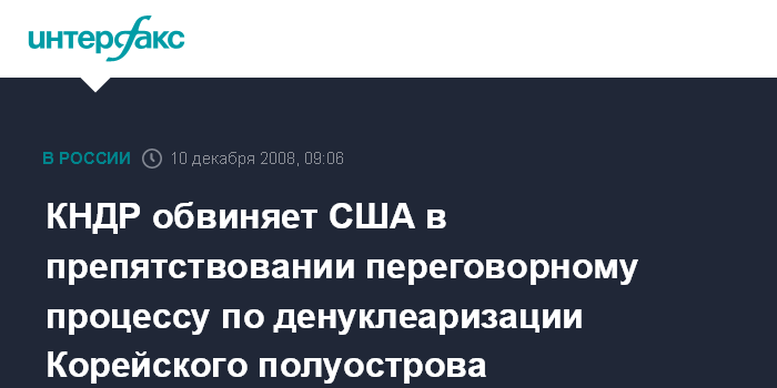 Москва. 10 декабря. INTERFAX.RU - Центральный печатный орган ЦК Трудовой партии Северной Кореи газета "Нодон синмун" опубликовала в среду комментарий, в котором обвиняет США в том, что наращивание Америкой вооружений в Азии подрывает шестисторонний переговорный процесс по ядерной проблеме КНДР.