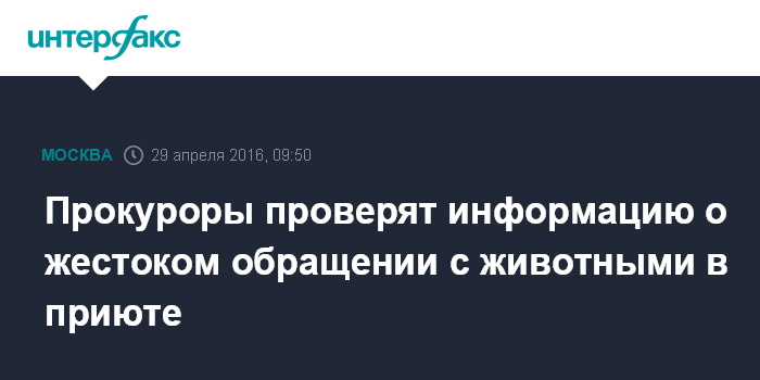 Москва. 29 апреля. INTERFAX.RU - Прокурорская проверка начата в связи с ситуацией в московском приюте для животных, где с ними жестоко обращались, сообщил "Интерфаксу" официальный представитель Генпрокуратуры РФ Александр Куренной.