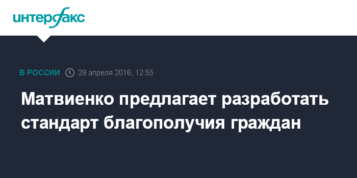 Москва. 29 апреля. INTERFAX.RU - Спикер Совета Федерации Валентина Матвиенко предложила разработать стандарт благополучия из-за серьезных различий уровня жизни людей в различных регионах России.