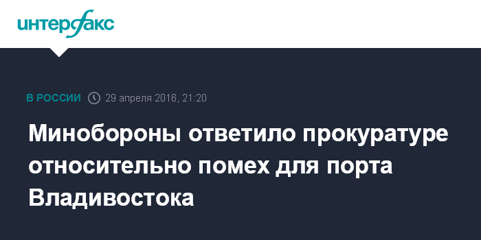 Москва. 29 апреля. INTERFAX.RU - В министерстве обороны России ответили на заявление прокуратуры Приморского края о том, что земли военного ведомства в Приморье препятствуют строительству объектов Свободного порта Владивостока.
