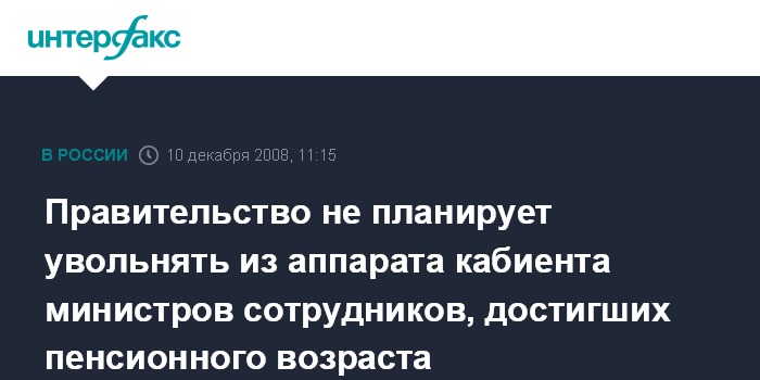 Правительство не планирует увольнять из аппарата кабиента министров сотрудников, достигших пенсионного возраста