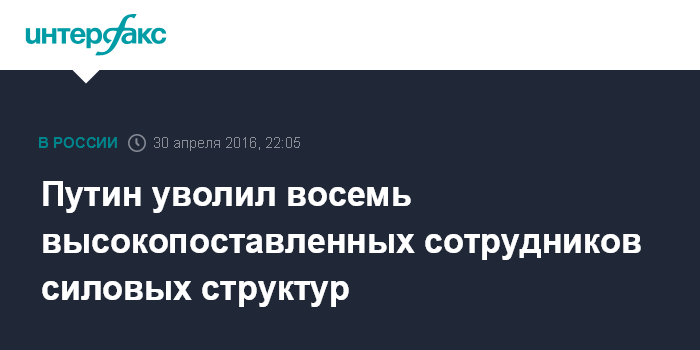 Путин уволил восемь высокопоставленных сотрудников силовых структур