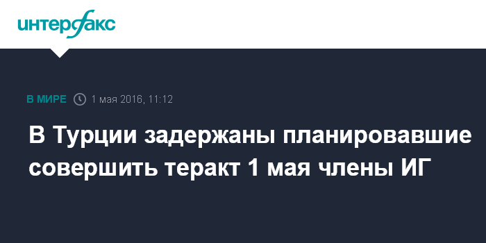 Москва. 1 мая. INTERFAX.RU - Полиция в Анкаре задержала четверых членов террористической группировки "Исламское государство" (запрещена в РФ), предположительно планировавших совершить теракт во время демонстраций, посвященных Международному дню труда 1 мая, сообщило в воскресенье агентство Anadolu.