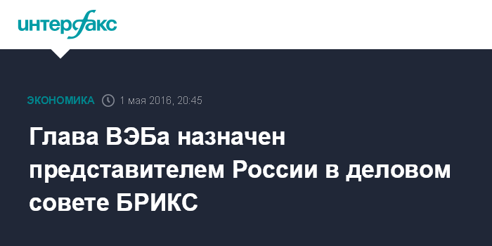 Глава ВЭБа назначен представителем России в деловом совете БРИКС