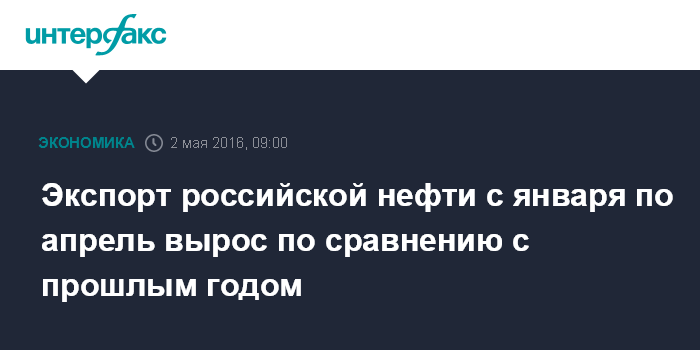 Экспорт российской нефти с января по апрель вырос по сравнению с прошлым годом