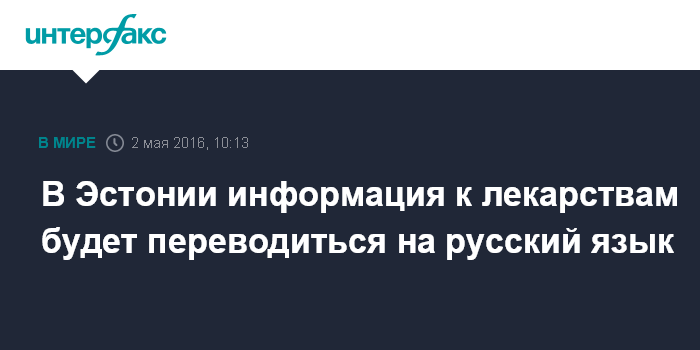 Москва. 2 мая. INTERFAX.RU - Правительство Эстонии выделяет из государственного бюджета средства на перевод информационных листков к безрецептурным лекарствам на русский и английский языки.