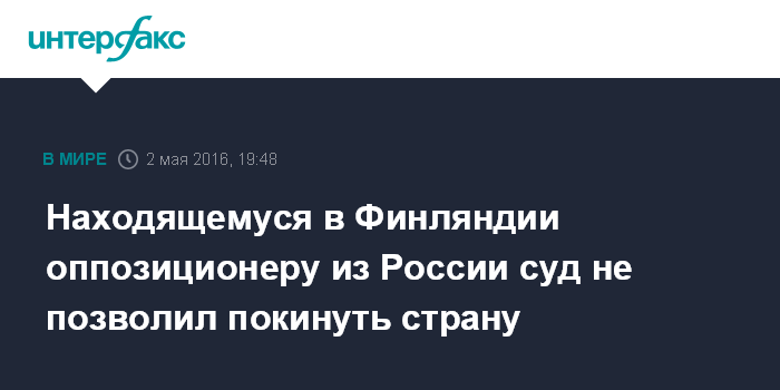 Находящемуся в Финляндии оппозиционеру из России суд не позволил покинуть страну