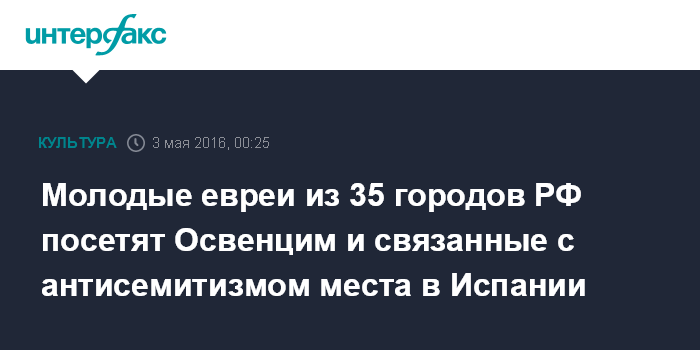 Москва. 3 мая. INTERFAX.RU - Группа еврейской молодежи из России побывает в местах в Европе, связанных с антисемитизмом в средние века и в новейшее время.