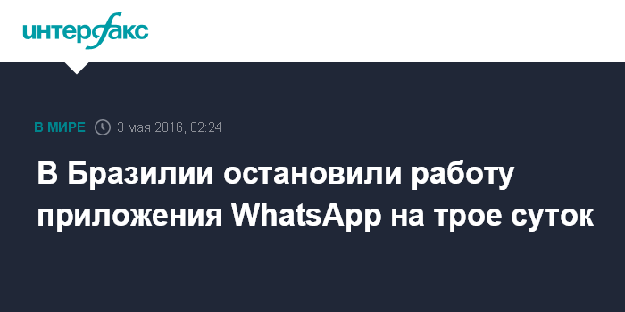 Москва. 3 мая. INTERFAX.RU - Суд бразильского штата Серджипи постановил заблокировать работу мессенджера WhatsApp на территории страны в течение 72 часов, сообщило агентство "Синьхуа".