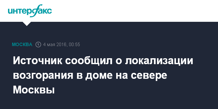 Источник сообщил о локализации возгорания в доме на севере Москвы