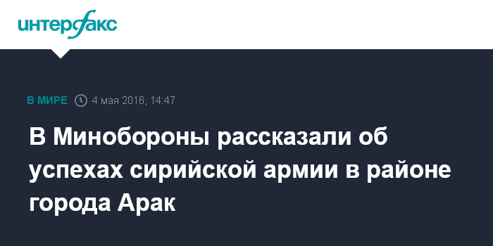 В Минобороны рассказали об успехах сирийской армии в районе города Арак