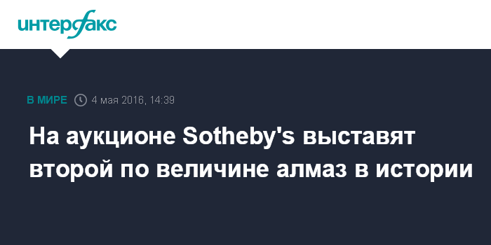 Москва. 4 мая. INTERFAX.RU - Алмаз размером с теннисный мяч - второй по величине в истории - будет выставлен на аукцион Sotheby's, сообщает Associated Press.
