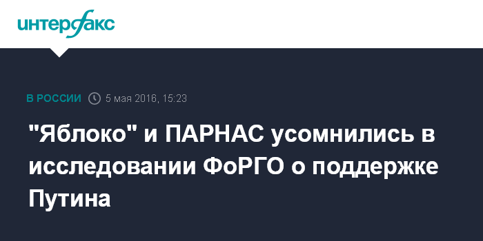 "Яблоко" и ПАРНАС усомнились в исследовании ФоРГО о поддержке Путина