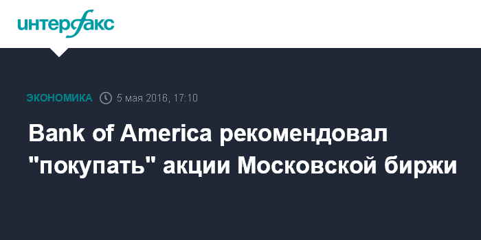 Bank of America рекомендовал "покупать" акции Московской биржи