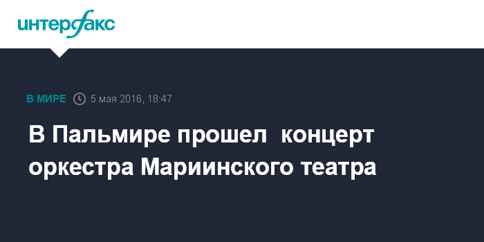 Москва. 5 мая. INTERFAX.RU - Концерт Симфонического оркестра Мариинского театра под управлением Валерия Гергиева "С молитвой о Пальмире" завершился на площадке всемирно известного амфитеатра древнего сирийского города.