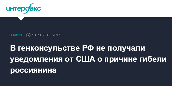 В генконсульстве РФ не получали уведомления от США о причине гибели россиянина