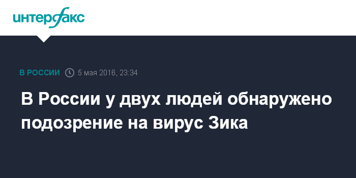 Москва. 5 мая. INTERFAX.RU - Два человека в России подозреваются в заражении лихорадкой Зика, сообщила глава Роспотребнадзора, главный санитарный врач России Анна Попова.