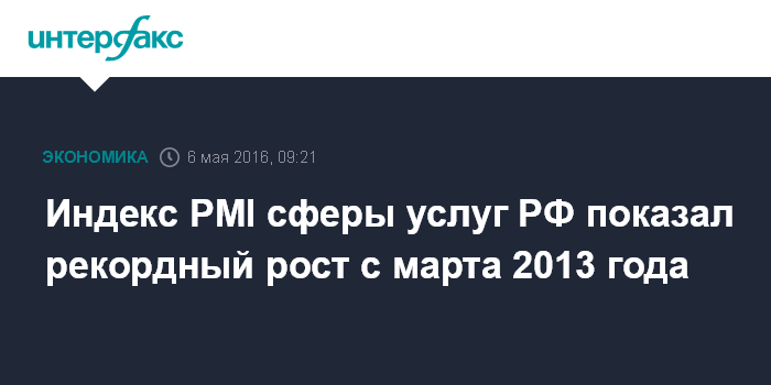 Таким образом, индекс PMI сферы услуг России бьет рекорды второй месяц подряд: в марте 2016 года он составил 52 пункта, что было максимальным результатом с мая 2015 года.