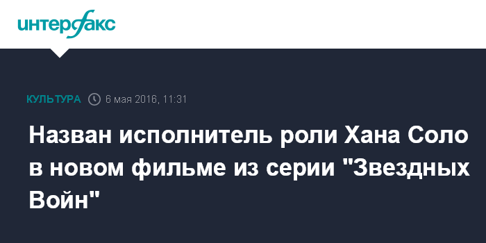 Назван исполнитель роли Хана Соло в новом фильме из серии "Звездных Войн"
