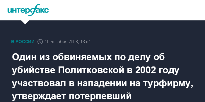 Один из обвиняемых по делу об убийстве Политковской в 2002 году участвовал в нападении на турфирму, утверждает потерпевший