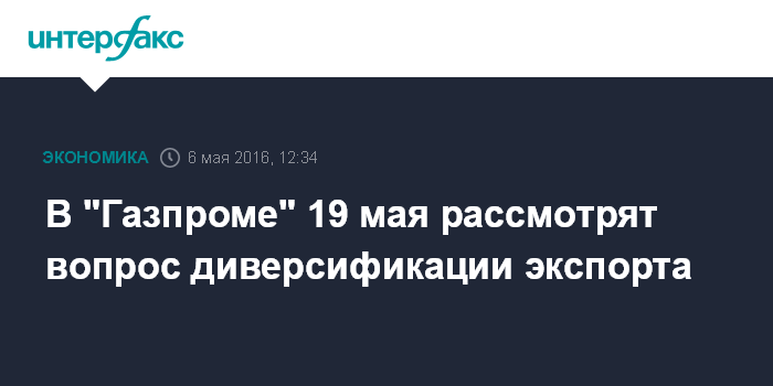 Москва. 6 мая. INTERFAX.RU - Совет директоров "Газпрома" на заседании 19 мая рассмотрит вопрос о долгосрочной диверсификации экспортных поставок и конкурентоспособности общества, сообщила компания.