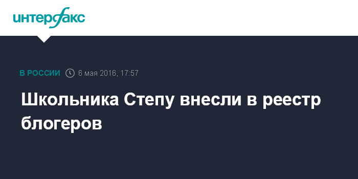 Москва. 6 мая. INTERFAX.RU - 11-летнего школьника Степана Савельева, ставшего звездой интернета, внесли в реестр блогеров. Об этом на своей странице в соцсети ВКонтакте сообщил Роскомнадзор.