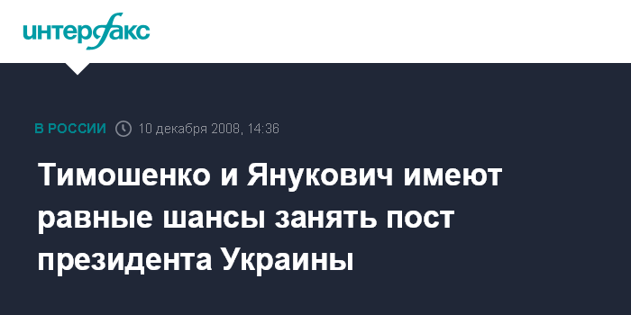 Тимошенко и Янукович имеют равные шансы занять пост президента Украины
