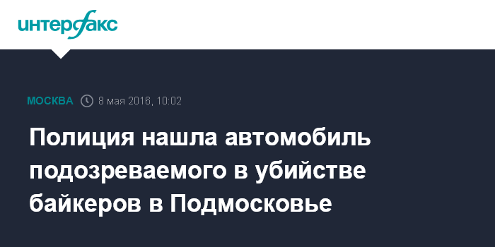 Москва. 8 мая. INTERFAX.RU - Полиция нашла машину подозреваемого в убийстве пяти байкеров в Подмосковье, сообщили "Интерфаксу" в пресс-службе ГУ МВД по Московской области.
