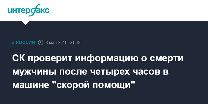 СК проверит информацию о смерти мужчины после четырех часов в машине "скорой помощи"