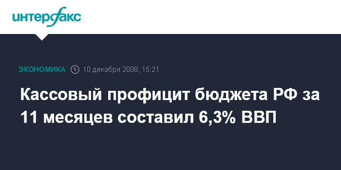 Кассовый профицит бюджета РФ за 11 месяцев составил 6,3% ВВП