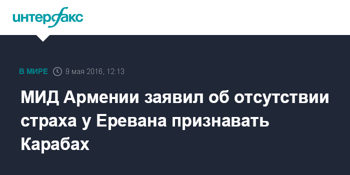 Москва. 9 мая. INTERFAX.RU - Армения не боится признавать независимость самопровозглашенной Нагорно-Карабахской республики (НКР), заявил министр иностранных дел Армении Эдвард Налбандян.
