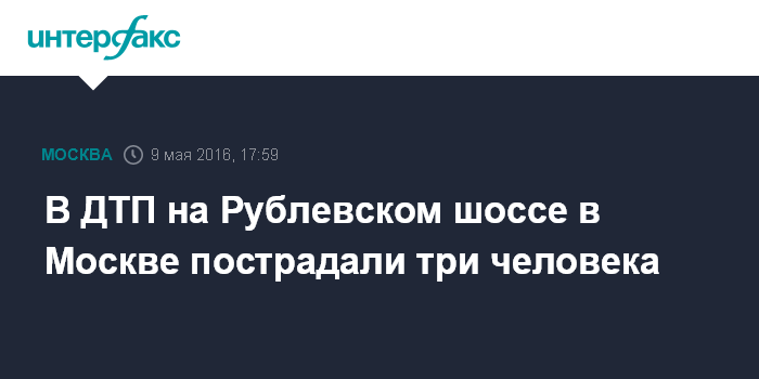 Москва. 9 мая. INTERFAX.RU - Три человека пострадали в результате столкновения четырех машин на Рублевском шоссе в Москве, сообщили "Интерфаксу" в понедельник в пресс-службе столичного управления ГИБДД.